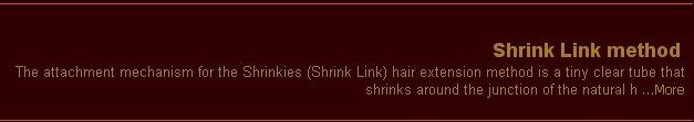 Just to inject some real fear into this -- I have seen this in a few places, salons/and or private extensionists profiting from using the name "shrinklinks" to promote a service when in fact they have neither been certified in or use Concept Inc.'s tubing and method. Further, using any heat shrink tubing that is not shrinklinks and promoting that to attract customers for personal profit