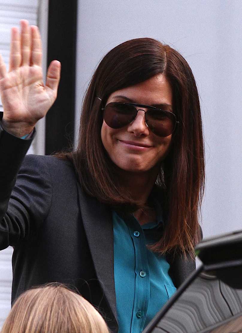 Any time Sandra promotes a movie, she has long hair. There's no way her bangs of maybe a year ago could have grown out that quickly without extensions. Not that I'm complaining...