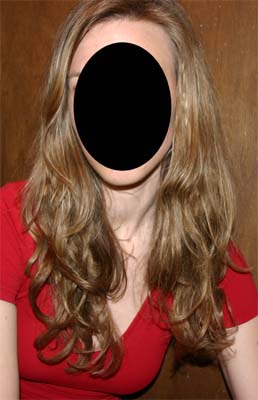Anyways, I like it long, but not quite as long as it was before...so I cut it down a bit more and was very careful about razoring the ends...remember, this is ONLY 2 oz. in my hair...I might dye another oz. or so and install...but the difference in thickness is huge...and this has got to be the perfect length...I'm showing you two real pics (not covered up) so you can see what a huge difference this makes in appearance...the first pic is from Christmas, I was in a good mood that day but no makeup, so its a pretty gross before ...the second pic is from today (I didn't style it at all for the pic, nothing), its naturally got a really pretty wave...