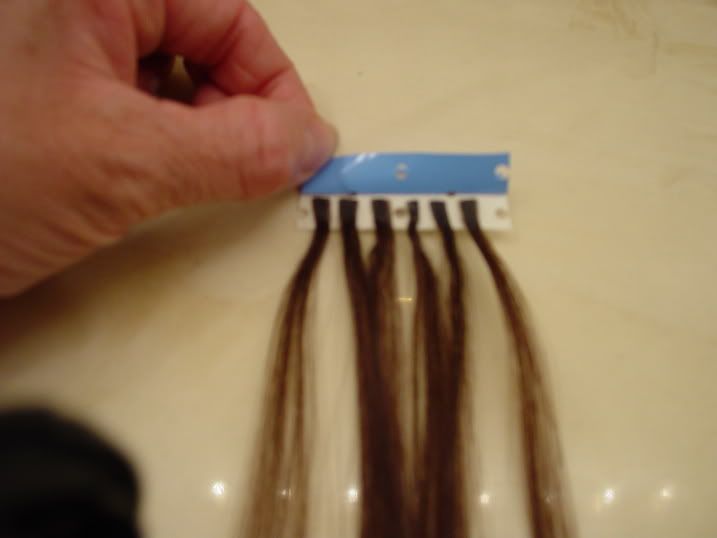 Sorry they are blurry, but my camera won't focus on things that close. I suppose if I read the manual I could figure it out. Anyways, I did trim the Pro-tac down width wise. The only thing that I would worry about is how much coverage would I get. Would I get the same fullness with 4oz of hair in pre-tips or would I get more with 4oz of weft. Does anybody know the average length of a 4oz weft?