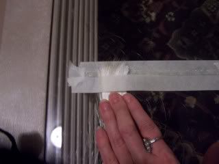 Tape a piece of Organdy ribbon over the top covering the tape, you can add a piece of tape underneath it if you want.