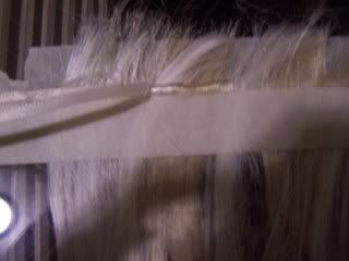 Valentine--I was searching for the ribbon like that and couldn't find any at the local walmart (grrrrr), where did you find it and did you just use white?  I was looking at some online sources and I was sort of wondering if a color like the lightest part of the hair (in this case a gold blond) would hide more in my hair?  Of course if I use them with protac my actual hair would cover anyway.  Not sure, but can you send me a source for the ribbon?  I have the glue gun ready to go :)