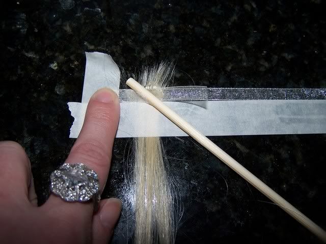 Run the shishkabob stick over the top like \ and really push the ribbon & glue & hair together. http://i156.photobucket.com/albums/t8/valentine319/100_1438.jpg