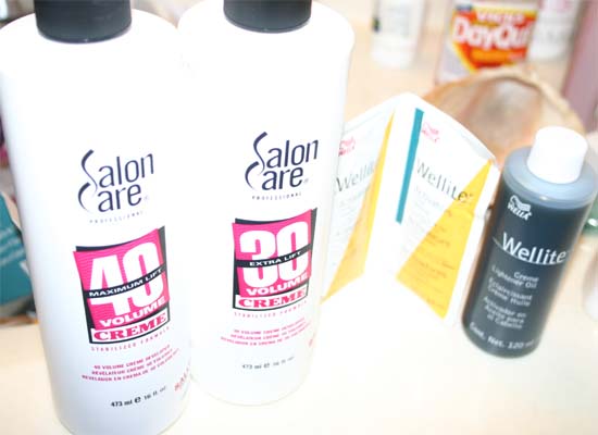 This is the first step of what I'm using to bleach it...Wella Wellite, and 30 and 40 Vol Developer...I heard Wella was on of the best, so thats what I'm trying first...