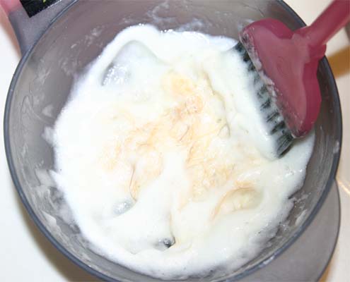 Also, and something Tangles touched on, is that my colorist told me that hair needs oxygen to bleach and the bleach solution will stop working if it dries out. She told me it would work best not in a bowl ( like spaghetti...lol) but laying flat out on a board or something...