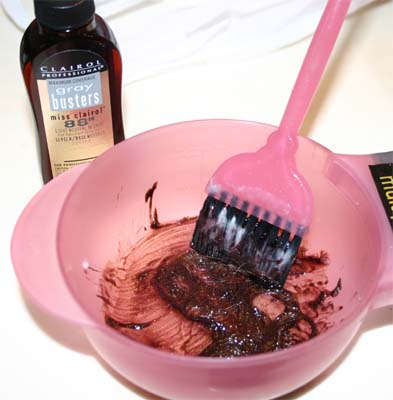 Now, after 30 minutes...everything is going well, but there seems to be a few stubborn hairs that aren't coloring (you can see them in there, a much darker brown still)...whats up with that?!!?